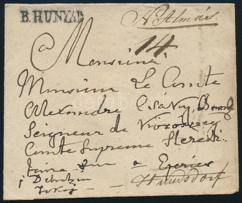~1840 Portós levél "B. HUNYAD" - "v.EPERIES"