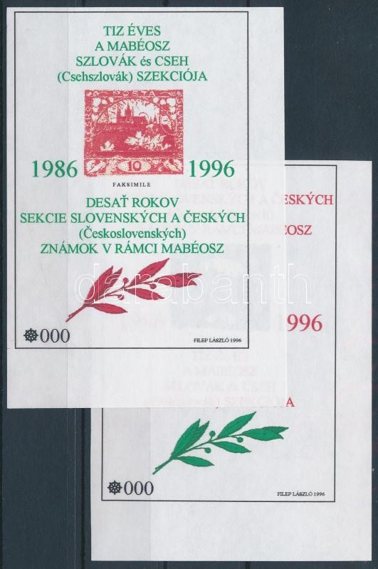 1996 10 éves a MABÉOSZ szlovák és cseh szekciója emlékívpár próbanyomat 000 sorszámmal, ritka (50.000)