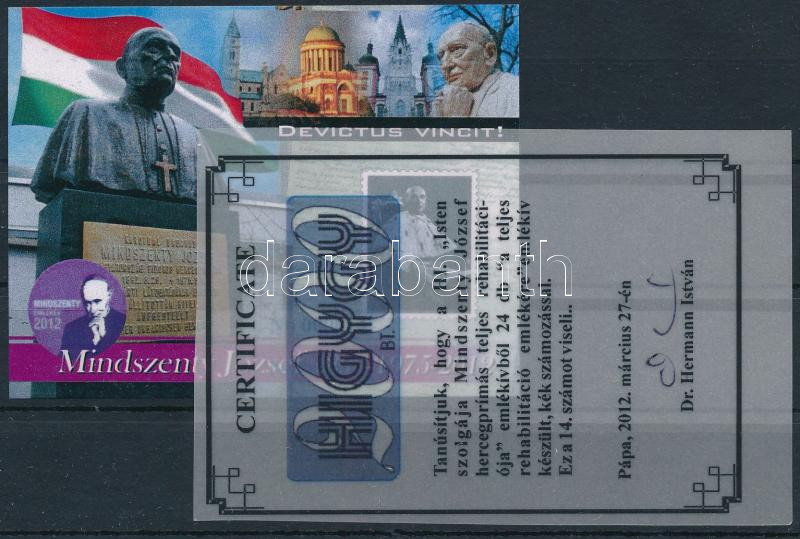 2012 Mindszenty József emlékív tanúsítvánnyal, csak 24 db létezik!