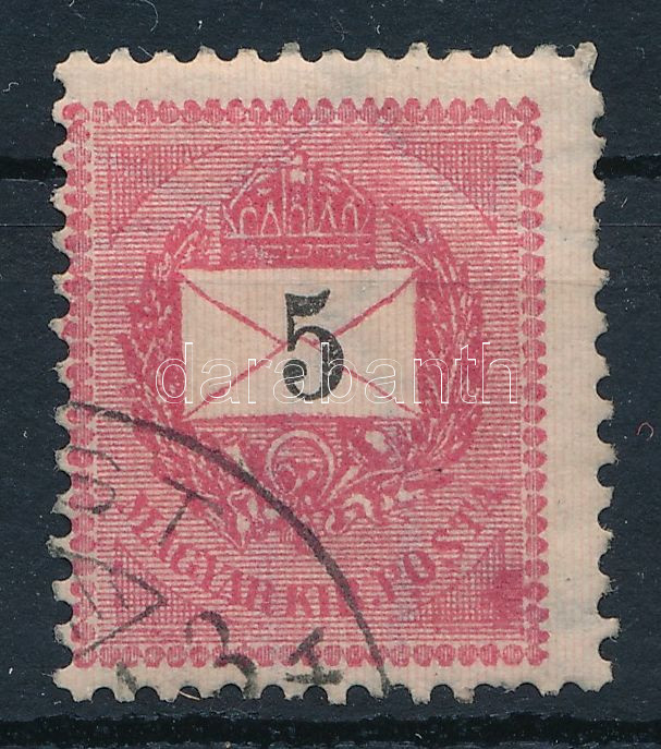 1889 5kr elektrotip bélyeg a jobb alsó háromszögben erős javítással