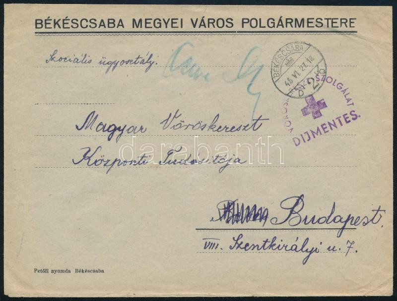1945 (1. díjszabás) Levél kézi kék cenzúra felirattal "VÖRÖSKERESZT SZOLGÁLAT DÍJMENTES"