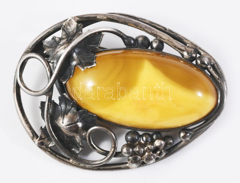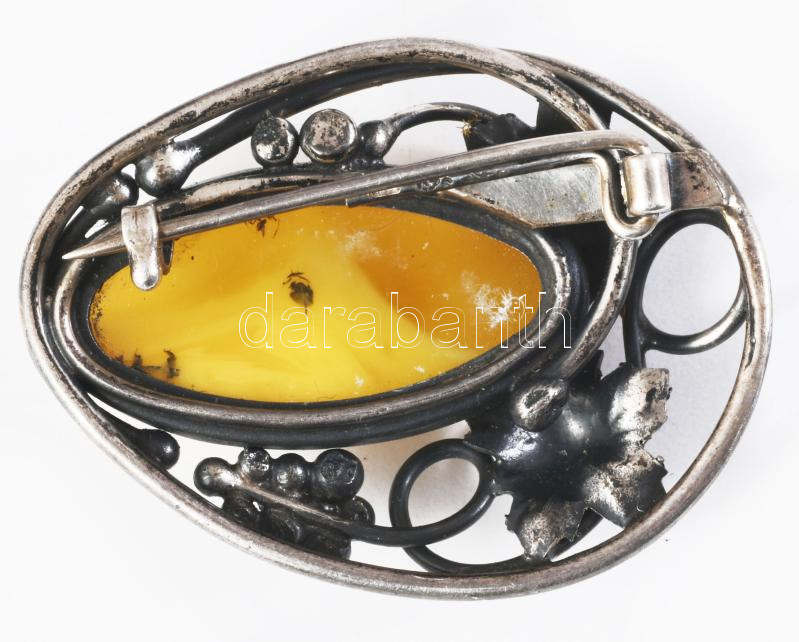 Ezüst (Ag) bross kővel, 4x3 cm, bruttó 10,5g