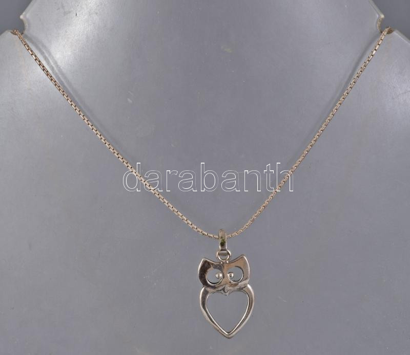 Ezüst (Ag) nyaklánc bagoly medállal, 925 ezrelékes ezüst, 5,2g