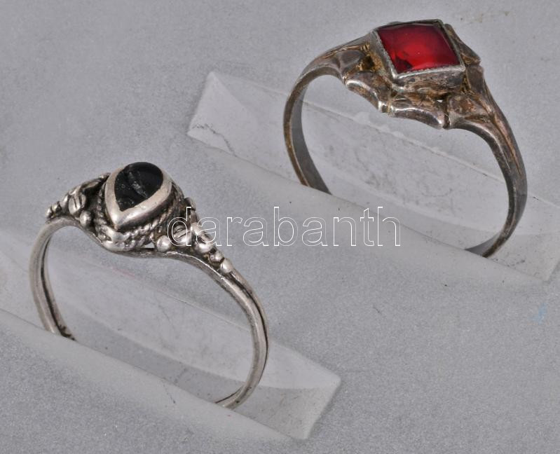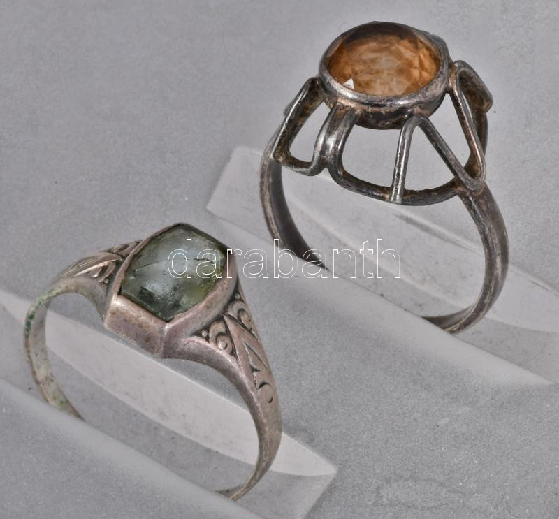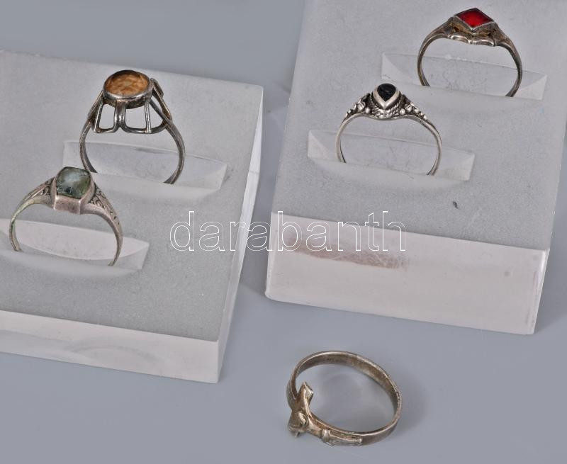 cca 20. sz. első fele, 5 darab antik ezüst (Ag) gyűrű, közte jelzett, közte kővel, bruttó 9,5g