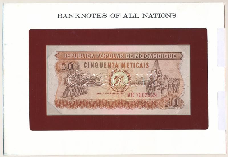 Mozambik 1980. 50M "AE 7203529" "Banknotes of all Nations" bankjegyes borítékban, bélyegzés levágva T:UNC