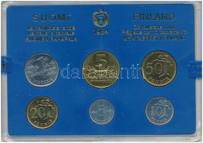 Finland 1984. 5 Penniä - 5 Markkaa (6xdiff) coin set in plastic case C:UNC