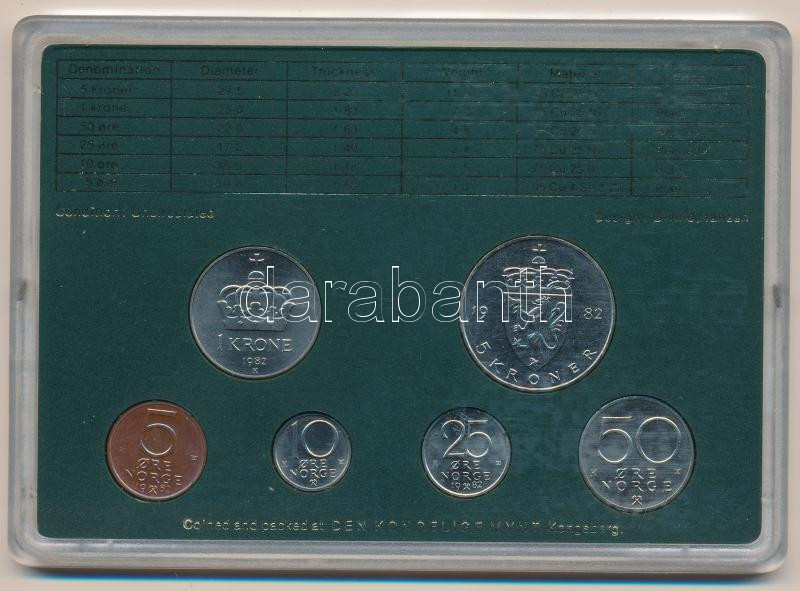 Norway 1982. 5 Öre - 5 Kroner (6xdiff) coin set in original plastic case C:UNC