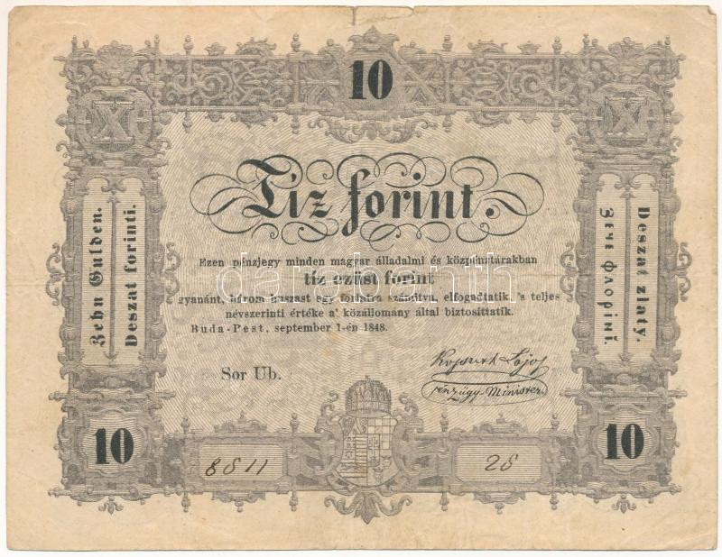 1848. 10Ft "Kossuth Bankó" "Ub. 8611 26" hátlapi szövegben "BÜNTETETTNEK" sajtóhiba T:F,VG