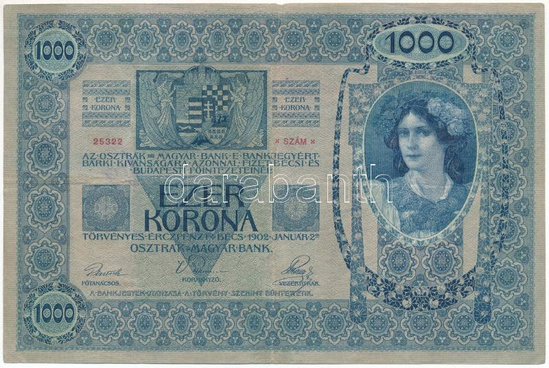 1902. 1000K függőleges, piros "DEUTSCHÖSTERREICH" felülbélyegzéssel, "1105 25322" T:F