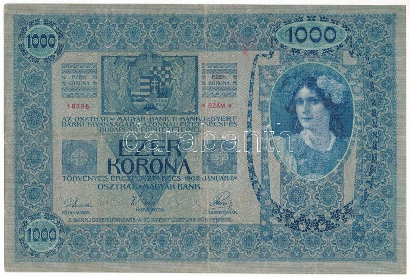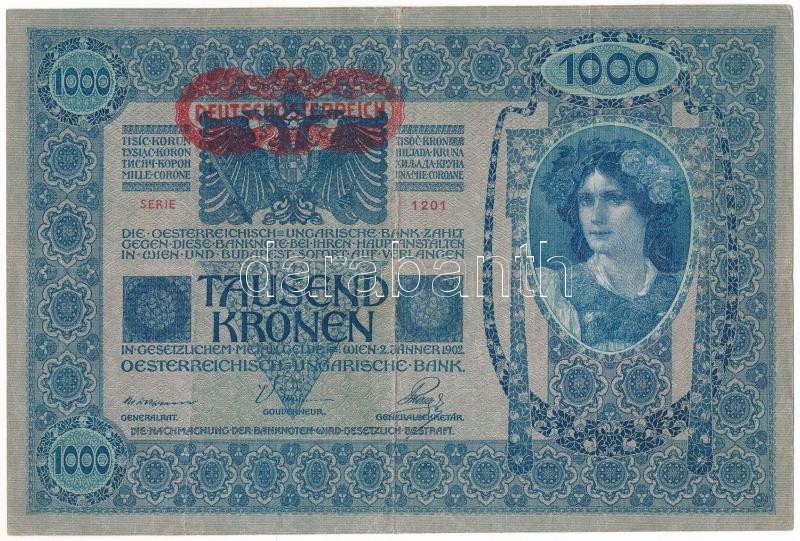 1902. 1000K vízszintes, piros "DEUTSCHÖSTERREICH" felülbélyegzéssel, "1201 16396" T:F pici szakadás