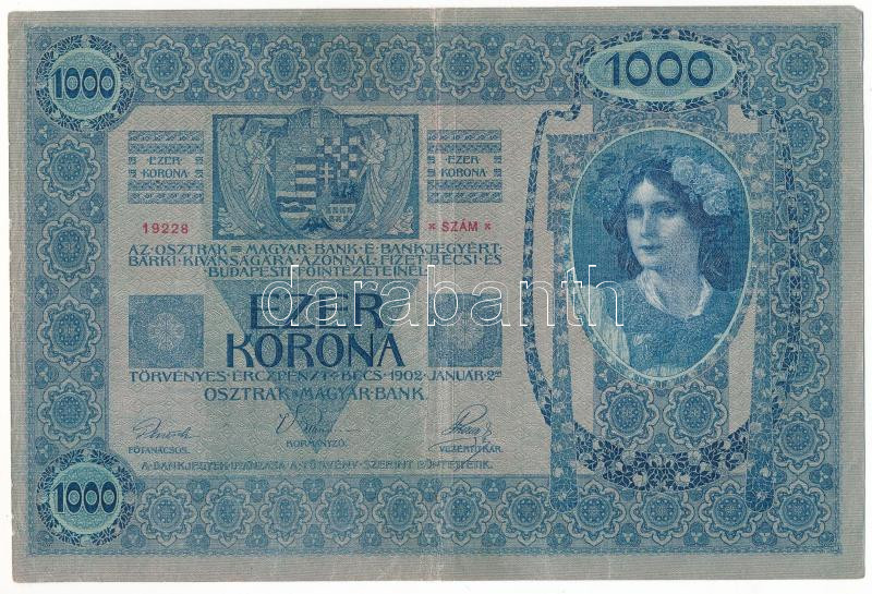 1902. 1000K vízszintes, piros "DEUTSCHÖSTERREICH" felülbélyegzéssel, "1202 19228" T:F pici szakadás
