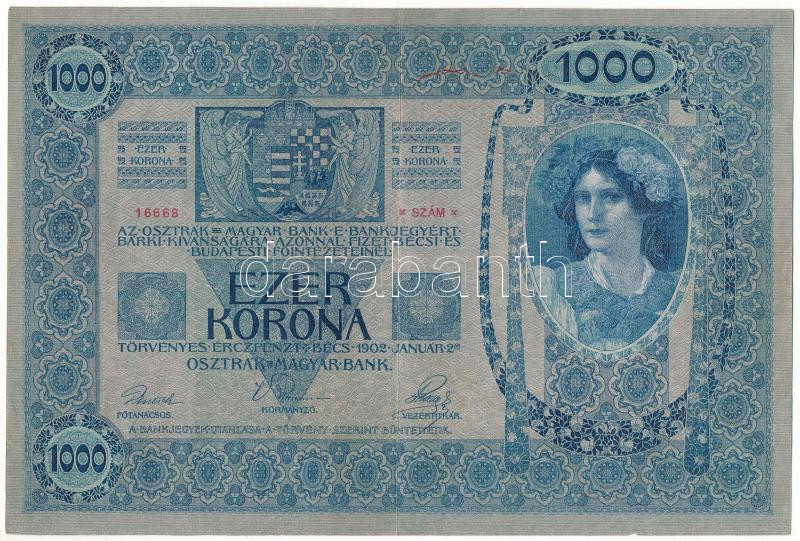 1902. 1000K vízszintes, piros "DEUTSCHÖSTERREICH" felülbélyegzéssel, "1203 16668" T:F