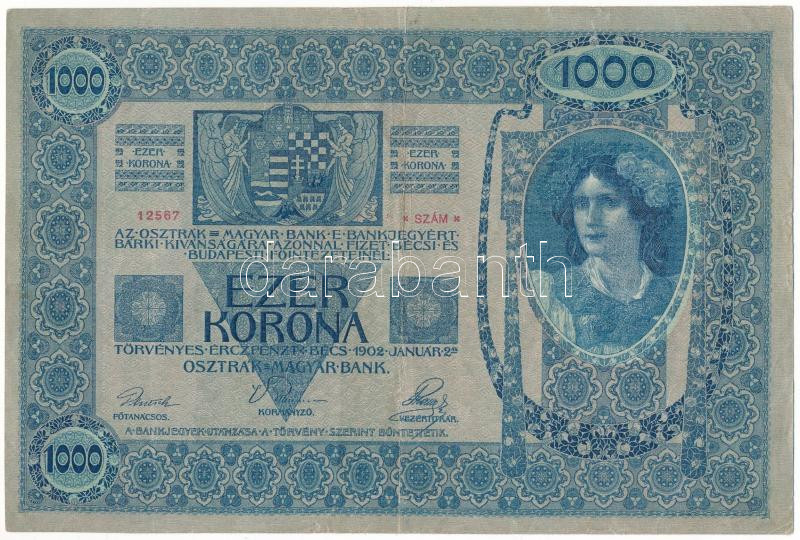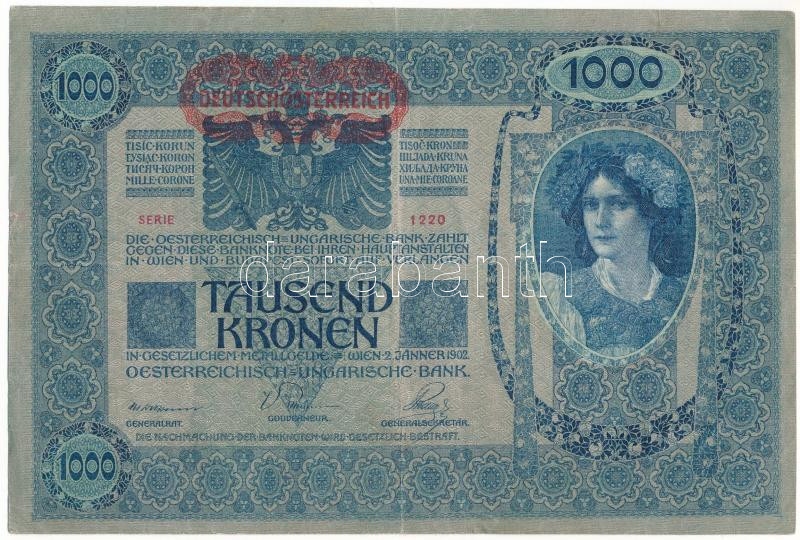 1902. 1000K vízszintes, piros "DEUTSCHÖSTERREICH" felülbélyegzéssel, "1220 12567" T:F pici szakadás