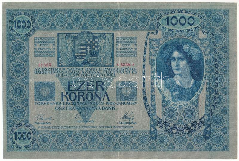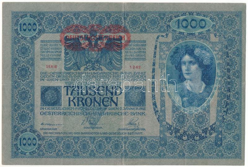 1902. 1000K vízszintes, piros "DEUTSCHÖSTERREICH" felülbélyegzéssel, "1242 37323" T:F