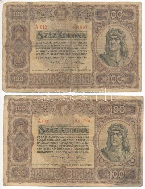 1920. 100K "Orell Füssli Zürich" nyomdahely jelöléssel (2x) T:VG