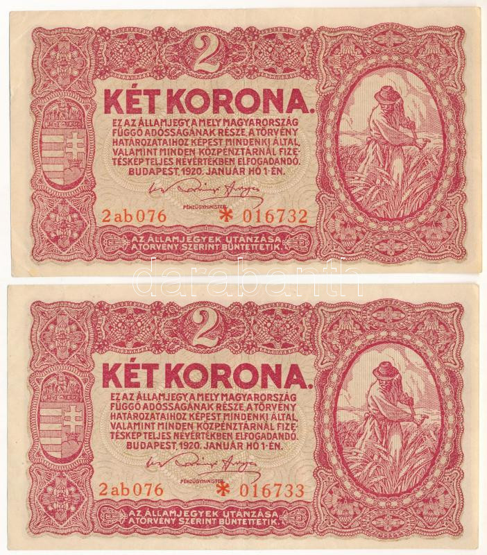 1920. 2K (2x) sorszámkövetők "2ab 076 * 016732 - 2ab 076 * 016733" T:XF