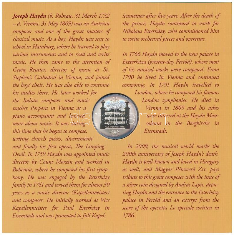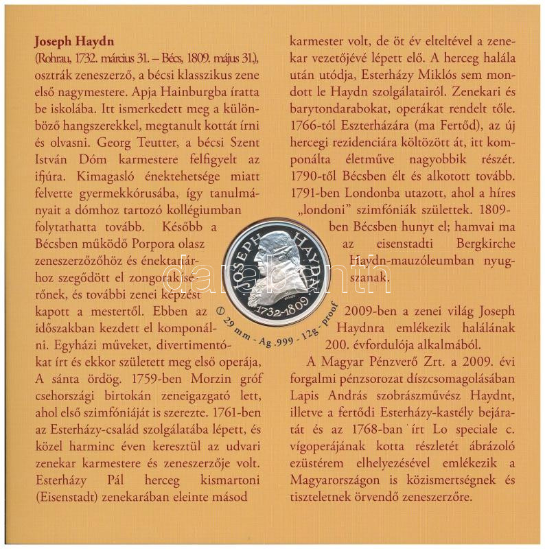 2009. 5Ft-200Ft "Haydn" (6xklf) forgalmi sor + "Joseph Haydn" Ag emlékérem (12g/0.999/29mm) T:PP, patina az ezüstön