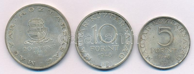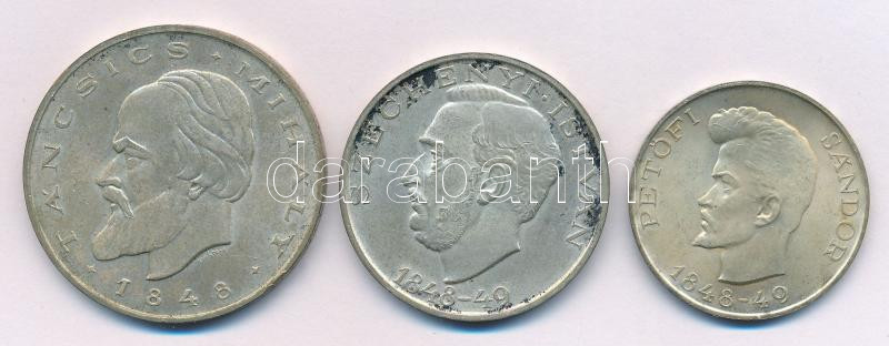 1948. 5Ft Ag "Petőfi" + 10Ft Ag "Széchenyi" + 20Ft Ag "Táncsics" "Szabadságharc sor" T:AU,XF patina