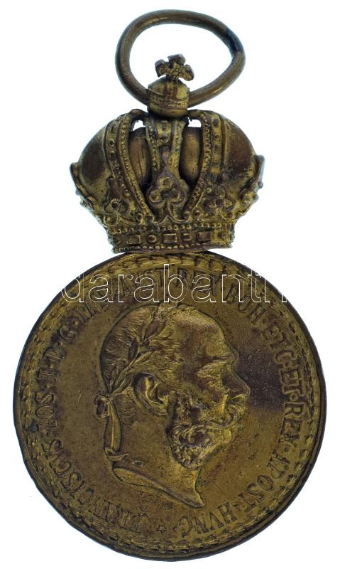 1890. "Bronz Katonai Érdemérem" aranyozott bronz kitüntetés mellszalag nélkül T:XF sérült korona
