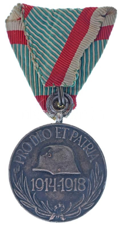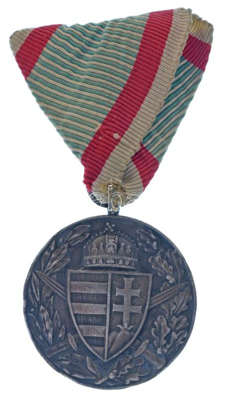 Hungary 1929. "Hungarian Commemorative War Medal with swords and a helmet" silver plated bronze decoration with ribbon C:XF patina, edge error, worn ribbon