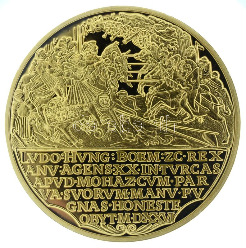 DN "Magyar Aranyóriások - Emlékérem a mohácsi csatavesztés 20. évfordulójára 1546" aranyozott Cu utánveret kapszulában, tanúsítvánnyal (46mm) T:PP