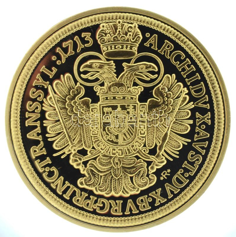 DN "Magyar Aranyóriások - III. Károly 10 aranydukát, 1713" aranyozott Cu utánveret kapszulában, tanúsítvánnyal (46mm) T:PP