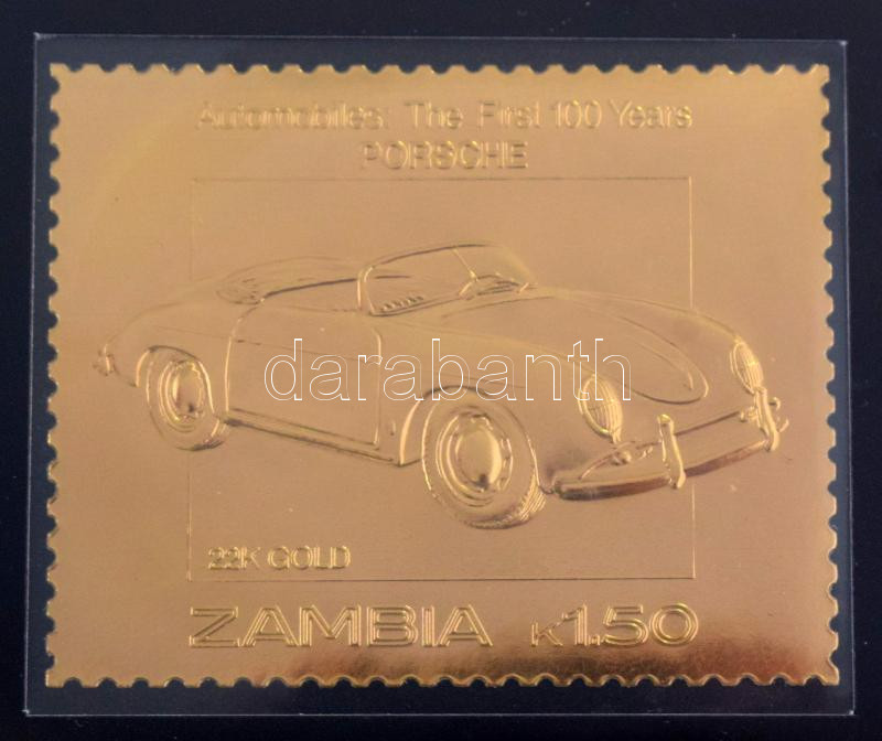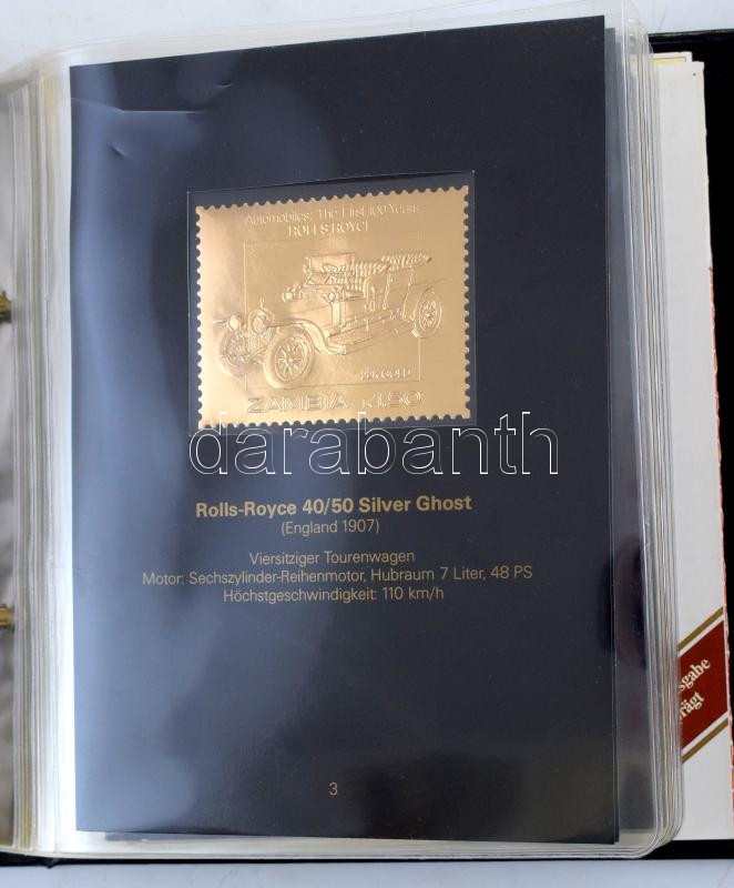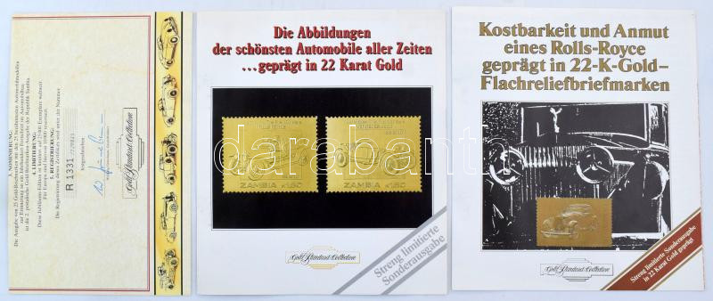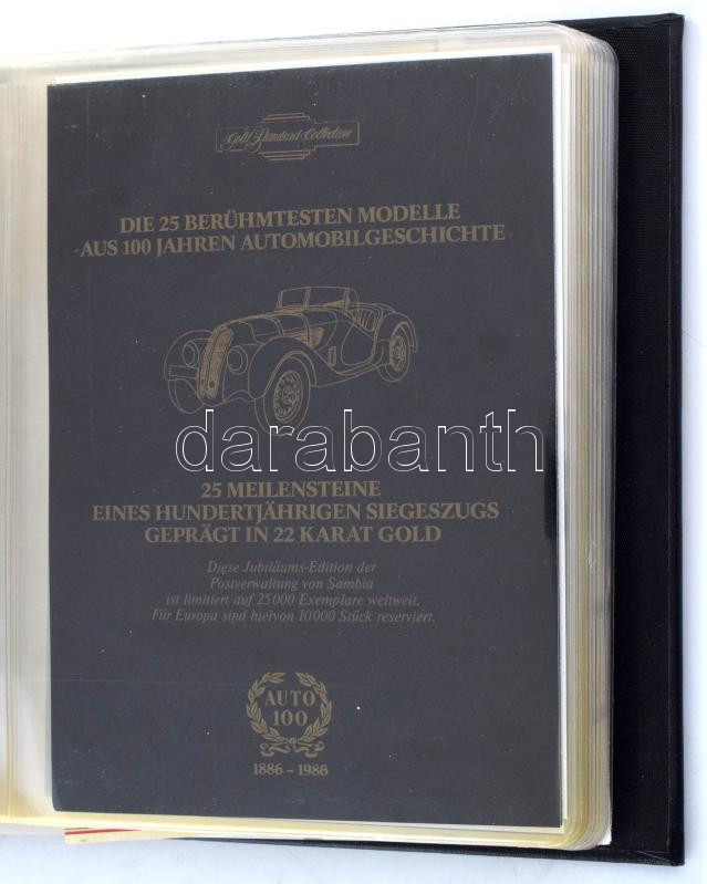 Zambia 1986. 7xklf 1.50Kw face value, 22 carat gold foil stamps, original, in "The 25 most famous models from 100 years of automotive history" album