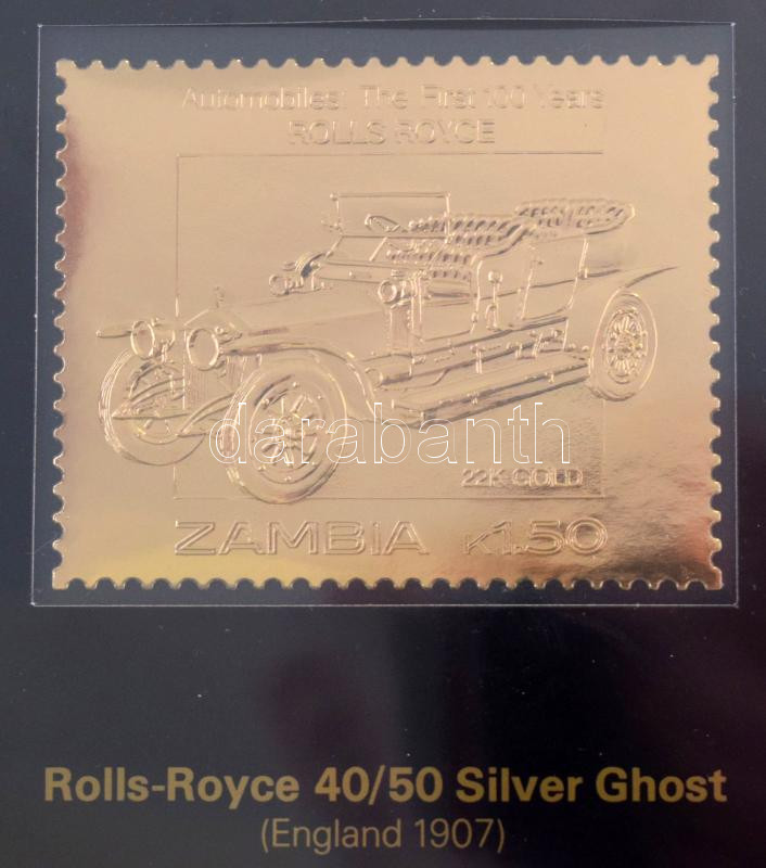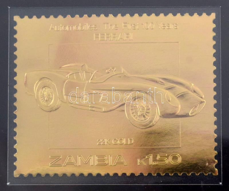 Zambia 1986. 7xklf 1,50Kw névértékű, 22 karátos aranyfóliás bélyegek, eredeti, "A 25 leghíresebb modell 100 év autótörténelméből" albumban