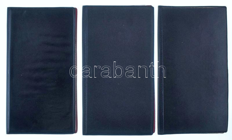 Három darab használt, de jó állapotú fekete műbőr berakó album, összesen 12db berakólappal (216db férőhellyel) vegyes méretű érmék számára