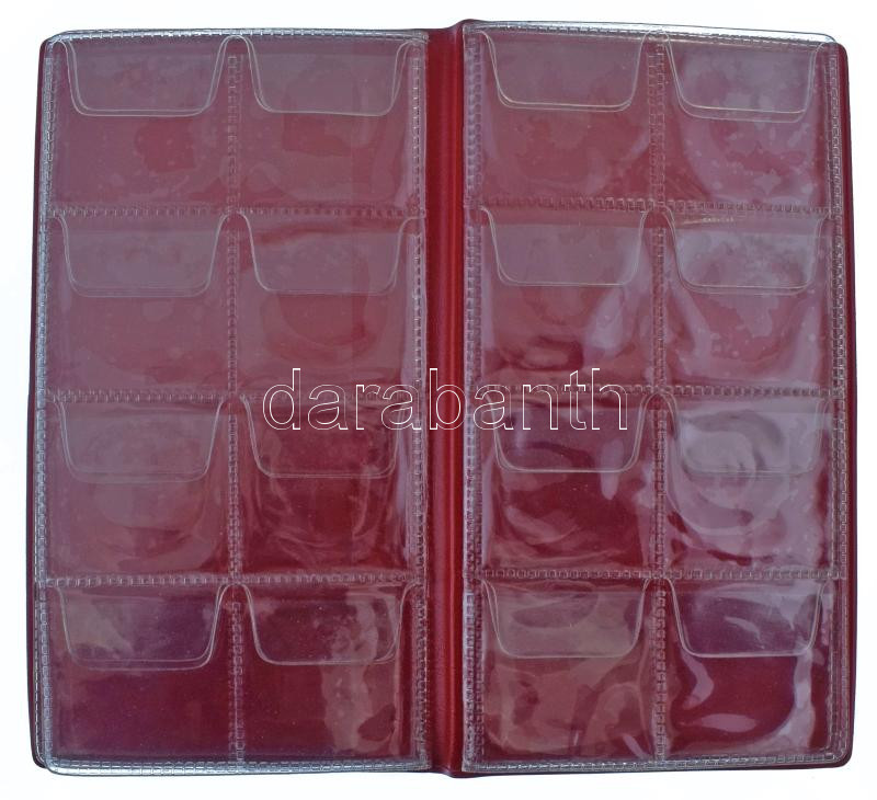 Kisalakú, műbőr érmeberakó, négy lapos, összesen 32 férőhellyel, közel újszerű állapotban
