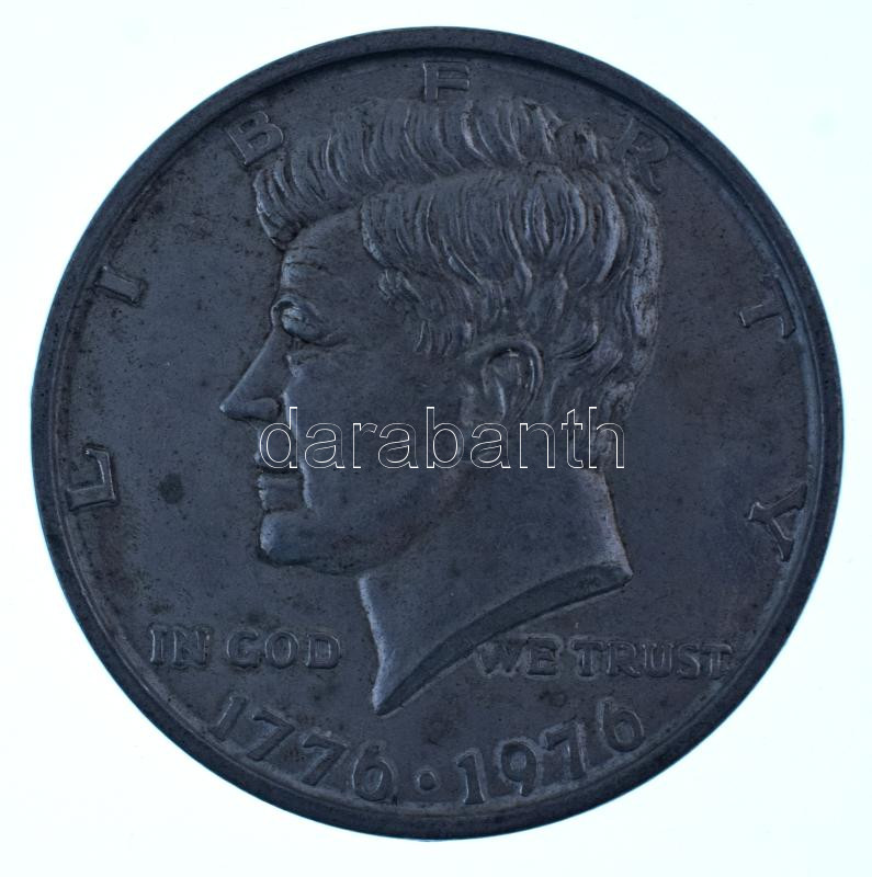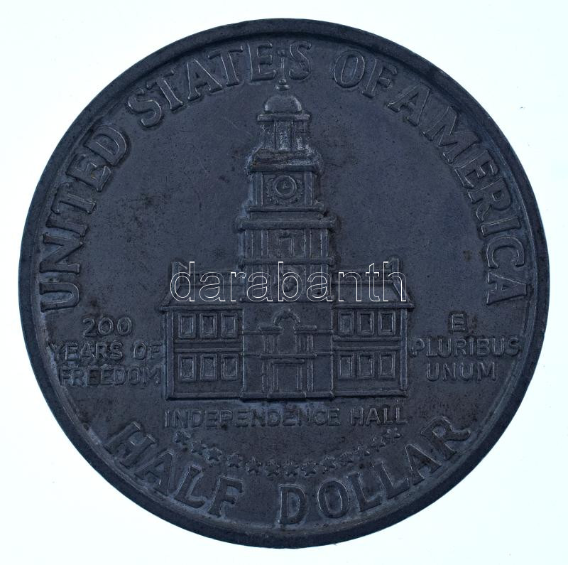 Amerikai Egyesült Államok 1976. 1/2$ Cu-Ni "A függetlenség 200. évfordulója (Bicentennial)" érme alapján készült fém emlékérem műanyag tokban (77mm) T:XF patina USA 1976. metal commemorative medal based on the 1/2 Dollar Cu-Ni "Bicentennial" coin in a plastic case (77mm) C:XF patina