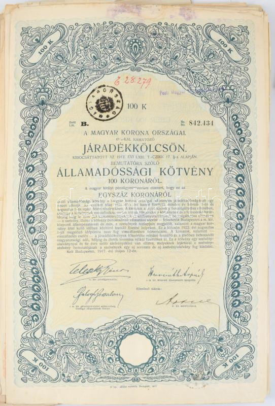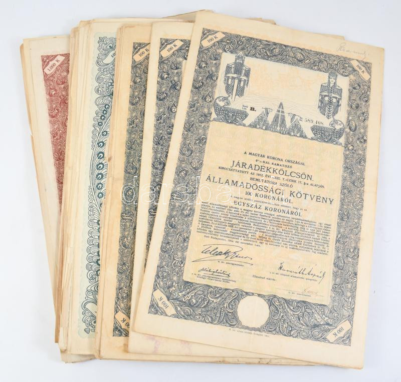 1920-1940 k. 55 db kötvény, járadékkölcsön, vegyes állapotban