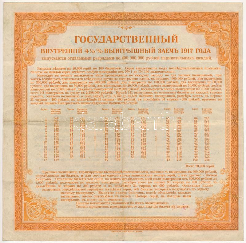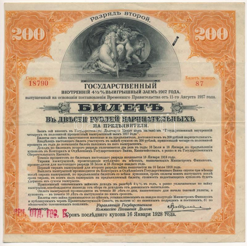 Ukrajna / Autonóm Köztársaság 1917. 4 1/2%-kal kamatozó állami nyereménykölcsön 200R értékben T:F