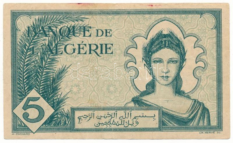 Algéria / Szövetséges megszállás 1942. 5Fr "L. 209 534" T:F foltos