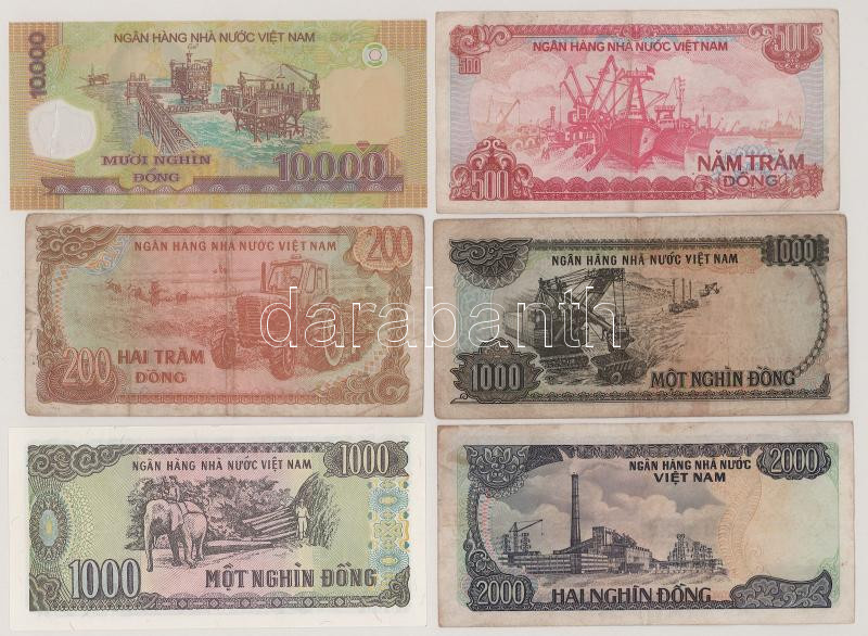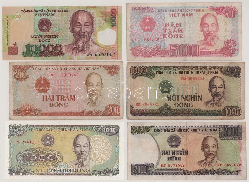 Vietnám 1987. 200D + 1000D + 2000D + 1988. 500D + 1000D + DN (2006-2024) 10.000D T:F, közte egy XF