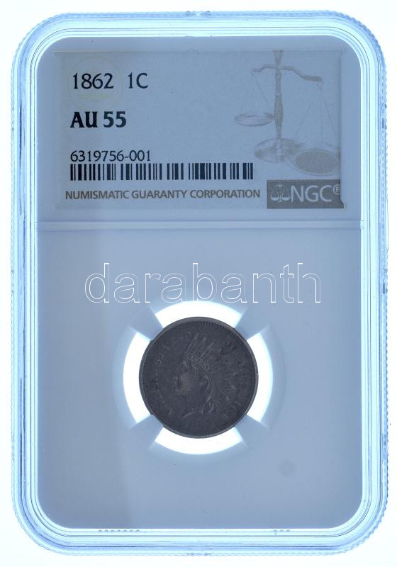 Amerikai Egyesült Állanok 1862. 1c Cu-Ni "Indiánfej", eredeti "NGC" tokban (6319756-001) T:XF (AU 55) patina