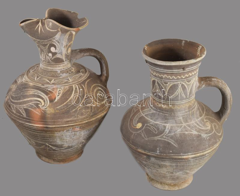 2 darab grúz népi kancsó, egyiken sérüléssel, m: 26-28 cm