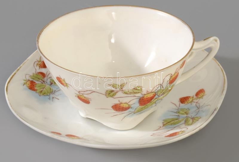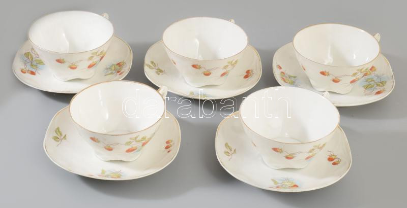 Antik epermintás 5 darab vékonyporcelán csésze alátéttel, kopással d: 15 cm