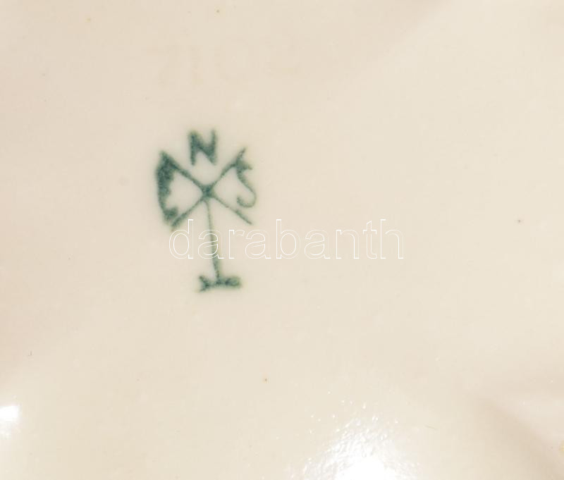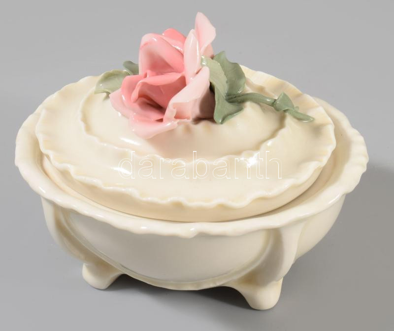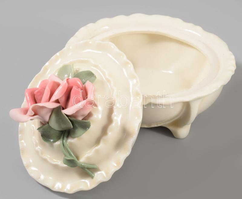 Ens bonbonier plasztikus virág díszítéssel, jelzett, minimális kopással, 12x9 cm