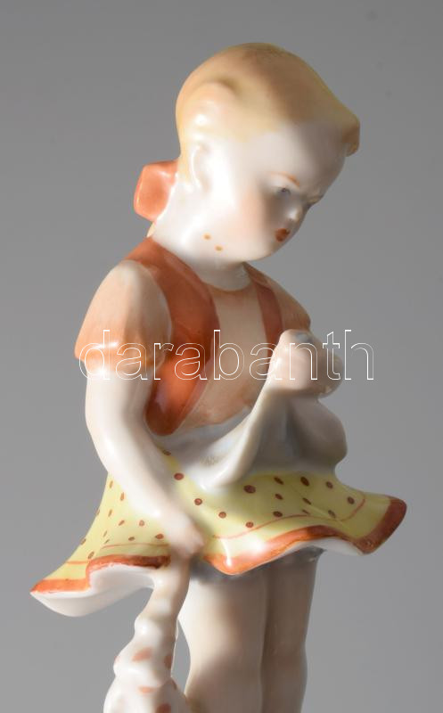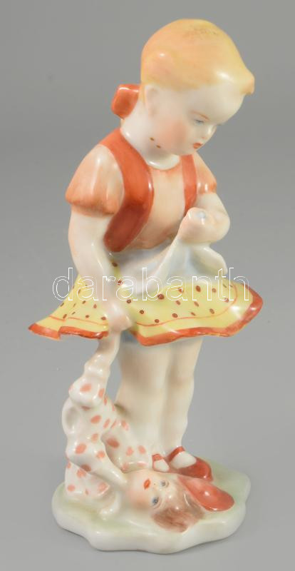 Herendi Tertia széteső babával játszó lány. Jelzett, hibátlan, m: 13 cm