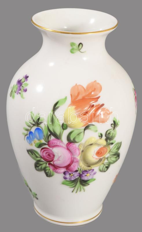 Herendi plasztikus virágmintás váza. Jelzett, hibátlan, m: 14 cm