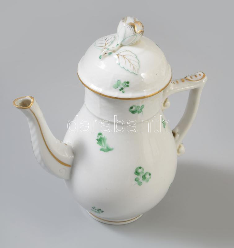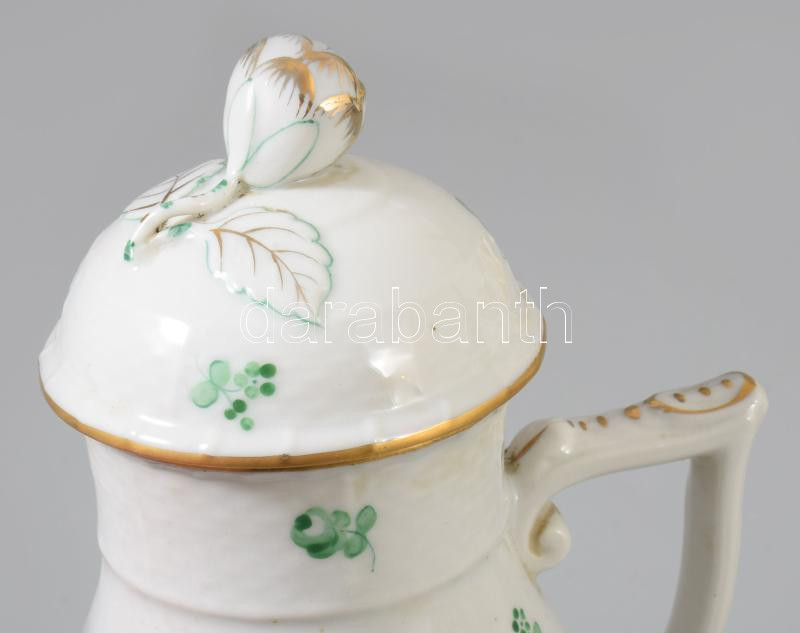 Herendi zöld virágmintás teás kanna, jelzett, hibátlan, m: 16 cm
