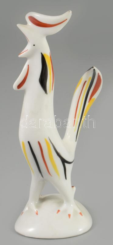 Hollóházi "art deco" kakas figura (terv: Török János). Kézzel festett, jelzett, kopással, m: 14,5 cm