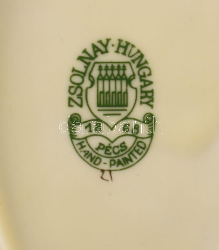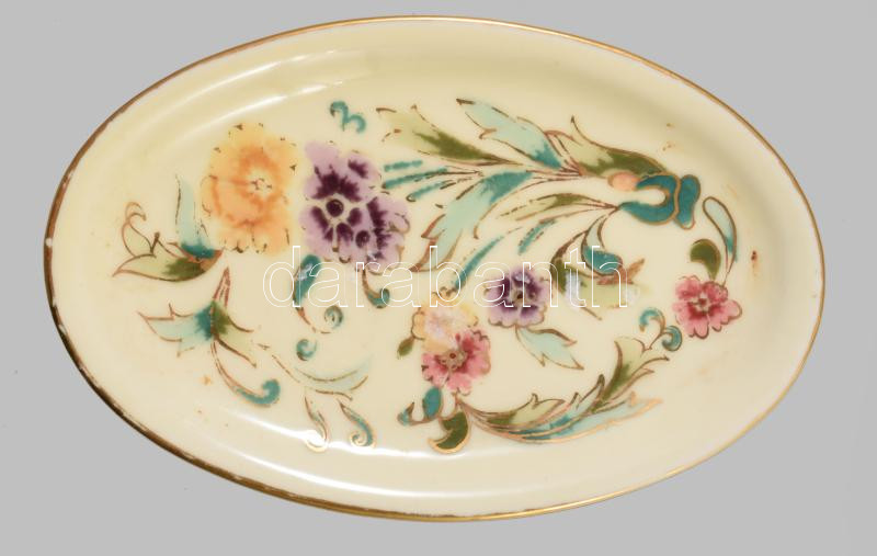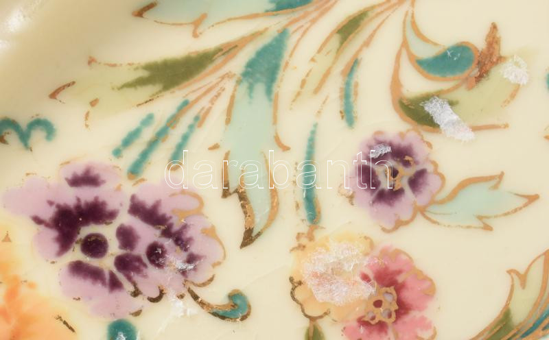 Zsolnay gyűrűs tálka. Kézzel festett, jelzett, kis kopással 12 cm