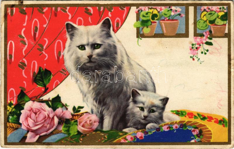 1931 Macskák virágokkal / Cats art postcard (EK)