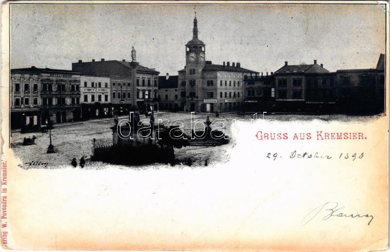 1898 Kromeríz, Kremsier; Grosser Platz / square, hotel, town hall, shops. Verlag W. Povondra (fl)