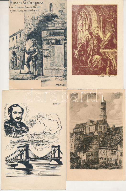 13 db RÉGI és MODERN művészi képeslap / 13 pre-1945 and MODERN art postcards