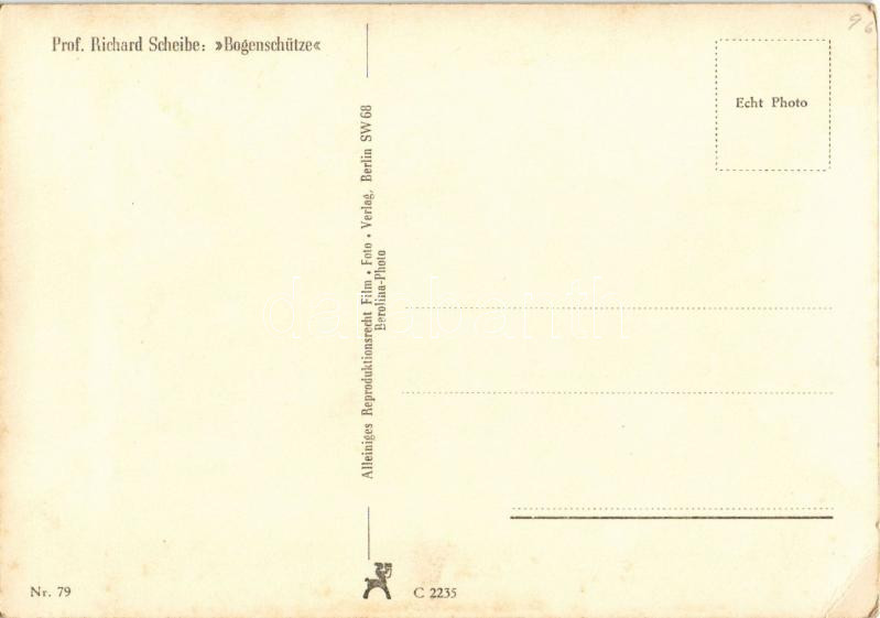 Berlin; Professor Richard Scheibe: "Bogenschütze" / Íjász, szobor, Harmadik Birodalom / German sculptor, archer, sculpture, Third Reich. photo Berolina (EK)