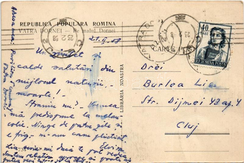 1958 Vatra Dornei, Dornavátra, Bad Dorna-Watra (Bukovina, Bucovina, Bukowina); Pe malul Dornei / Dorna riverside, spa (fa)