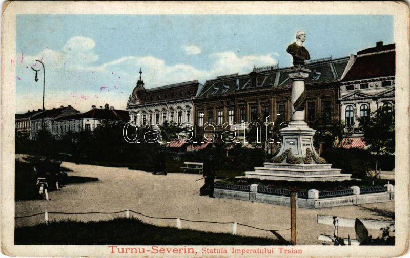 Turnu Severin, Szörényvár; Statuia Imperatului Traian. Ad. Maier & D. Stern / statue (worn corners)